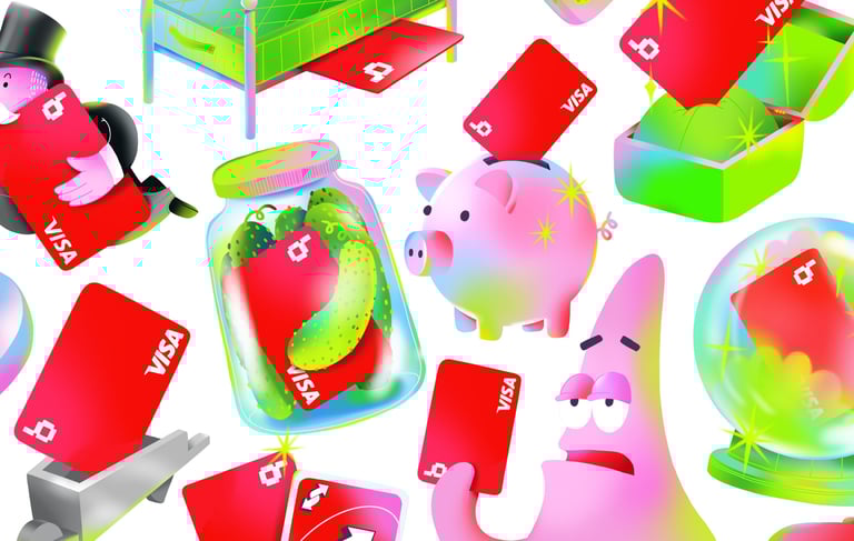Brighty komandai sukurtos ryškios, žaismingos iliustracijos vidinei komunikacijai. Vizualuose atsirado popkultūros nuorodos, subtiliai susietos su jų veikla – skaitmenine bankininkyste, kortelėmis ir pinigais. Tikslas buvo įnešti daugiau gyvybės ir humoro į kasdienę komunikaciją, išlaikant brando identitetą. Iliustracijos pritaikytos dviem formatais – fiziniams lipdukams ir skaitmeniniams „chat“ stickeriams.
