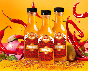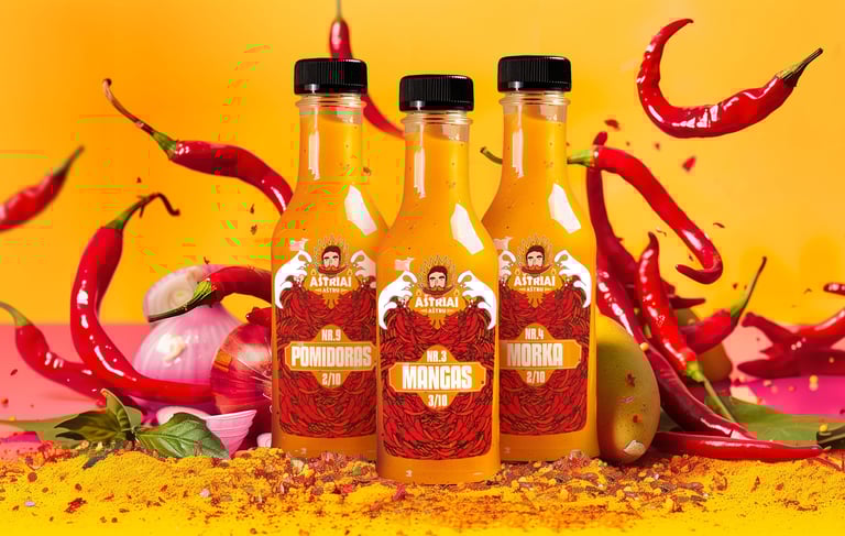 Aštriai aštru — padažų etikečių dizainas