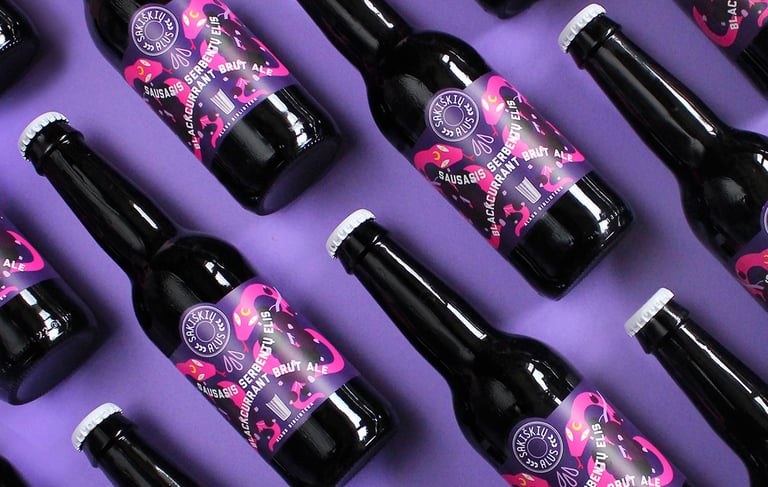 Sausam juodųjų serbentų eliui sukurta ryški, iliustruota etiketė, turint visišką kūrybinę laisvę. Dizaino pagrindu tapo uogų motyvas, perteiktas žaisminga ir ekspresyvia vizualine kalba. Etiketė išsiskiria lentynoje ir aiškiai komunikuoja produkto skonį bei nuotaiką. Iliustracija čia tampa pagrindiniu pasakojimo įrankiu.
